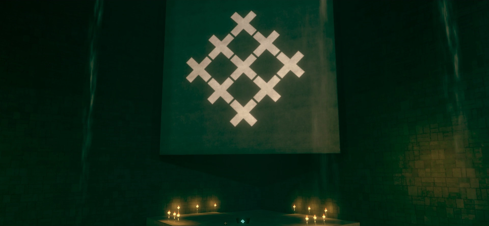 not that you believe those rumors. you know iris just likes to look into urban legends, as established. still, it's a little nerve-wracking for you to follow the coordinates and begin to head to an entrance to the west. there's a small door, and when you open it everything is dark inside. as you cross the iron bridge, the door shuts behind you. careful. the lighting is dim, and the distance is far. the ladder leads you about 50 meters down, if you had to guess, and when you reach the ground you can see the full view of this place. multiple columns seem to hold it up, pathways leading to different entrances and exits. torches are mounted on the walls for light, and quicksand appears to fall from the roof over your head in some places. up ahead also appears to be an altar, a large pyramid-shaped platform with the naix symbol overhead, lit by candles.